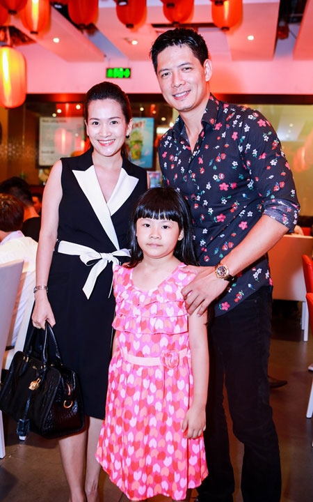 | Vợ chồng Bình Minh - Anh Thơ đưa con gái lớn An Nhiên đến chúc mừng bạn thân Trương Ngọc Ánh. Nam diễn viên Vật chứng mong manh hiện đắt show MC, còn vợ anh thành công với vai trò doanh nhân. Thời gian gần đây, cặp đôi liên tục xuất hiện cùng nhau khi tham gia sự kiện. |