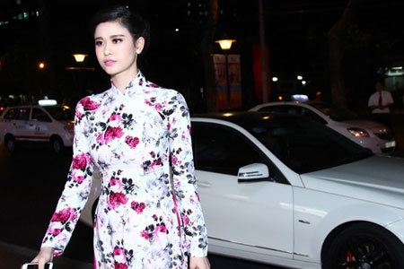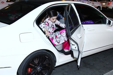 Tối 24/3, nữ diễn viên "Cuộc chiến hoa hồng" đến tham dự buổi công chiếu phim "Dịu dàng" tại TP HCM bằng xế hộp có giá hơn 1 tỷ đồng do ông xã Tim mua tặng.