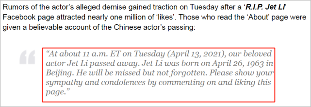 Trước đây, tại Trung Quốc cũng từng xuất hiện tin đồn Lý Liên Kiệt bị bệnh ung thư xương, đã qua đời, thậm chí còn có hình ảnh linh đường tưởng niệm. Có lẽ cũng chính vì tin này, phía Lý Liên Kiệt lại không lên tiếng đính chính kịp thời nên đã truyền ra nước ngoài và dẫn đến việc đăng tải Lý Liên Kiệt qua đời như hiện tại.