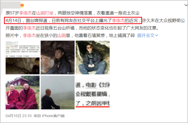 Theo như một số dân mạng đăng tải thì hiện tại, Lý Liên Kiệt đang nghỉ dưỡng tại một vùng núi. Hình ảnh cho thấy ông ngồi thiền trong hang động, trạng thái vô cùng khỏe mạnh, không hề có vấn đề gì.