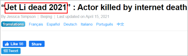 Vốn là ngôi sao nổi tiếng, từng đóng nhiều bộ phim Hollywood nên độ phủ sóng của Lý Liên Kiệt rộng khắp mọi nơi. Mới đây, trên mạng xã hội nước ngoài xuất hiện những tin đồn thất thiệt về Lý Liên Kiệt, đăng tải những bài viết thông báo rằng ông đã qua đời, thậm chí từ khóa "R.I.P. Jet Li" cũng được tìm kiếm rất nhiều.