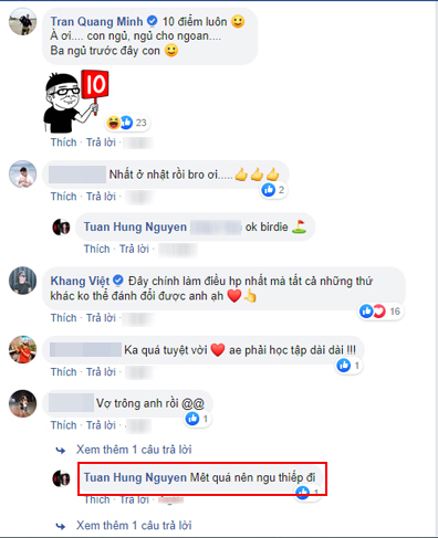 Rất nhiều bạn bè đồng nghiệp và cư dân mạng đã rất ấn tượng với hình ảnh này của Tuấn Hưng. Không khó để thấy những bình luận khen ngợi anh như "Đây chính là điều hạnh phúc nhất mà tất cả những thứ khác không thể đánh đổi được anh ạ", "Ông bố của năm đây rồi", "Anh em phải học tập dài dài", "Vậy mới là đàn ông anh nhỉ"...