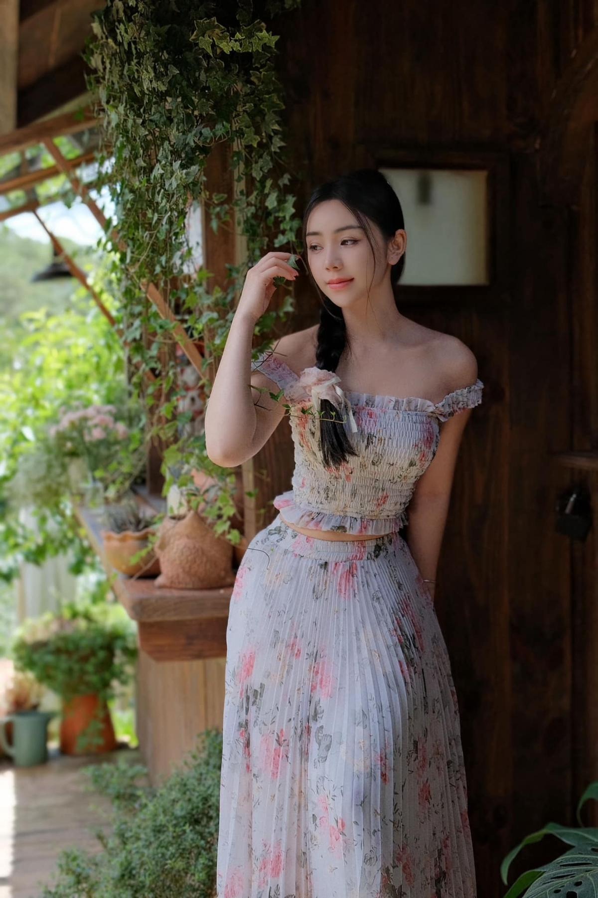 Ở bài đăng mới, Quỳnh Kool hoá nàng thơ trong bộ váy hoa màu hồng, chất liệu bay bổng đẹp mắt. Phần vai áo trễ nải khoe xương quai xanh quyến rũ, váy được thiết kế ôm sát cơ thể, làm nổi bật lên vóc dáng lý tưởng của cô nàng. Vòng eo “con kiến” vạn người mê của Quỳnh Kool khiến dân tình nườm nượp xin vía.