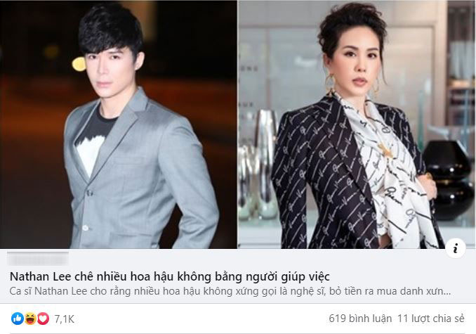 Tháng 4/2020, Nathan Lee từng khiến MXH được một phen dậy sóng với phát ngôn cực gắt bàn về danh hiệu "Hoa hậu". Cụ thể, nam ca sĩ viết: "Mình mong khán giả sáng suốt và không đánh đồng nghệ sĩ. Nhiều người bỏ tiền ra mua mấy cái danh Hoa hậu ao làng hòng dọn đường bước chân vào showbiz Việt. Làng lúa, làng hoa, nơi nhìn đâu cũng thấy bông Hậu (Hoa hậu). Kẻ mua vì thừa tiền nhưng háo danh, người thì muốn lừa gạt bởi sự hào nhoáng, sang chảnh ảo. Hãy tự hỏi họ đã có hoạt động nghệ thuật gì? Là nghệ sĩ thì phải có sản phẩm".
