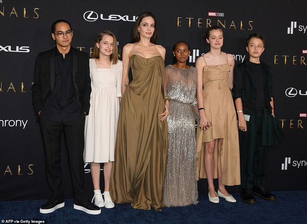 Vào ngày 18/10 vừa qua, khi tham dự sự kiện ra mắt bộ phim bom tấn của Marvel - "Eternals" cùng mẹ và các em, Shiloh mới thật sự khiến cả thế giới chao đảo vì lần đầu tiên mặc váy đi thảm đỏ. Thay vì những bộ vest lịch lãm và cổ điển, Shiloh giờ đây tỏa sáng trong chiếc váy 2 dây màu nude nhã nhặn, giày thể thao được thay thế bằng giày bệt nữ tính. Nét đẹp tự nhiên được thừa hưởng từ cả bố và mẹ đã khiến người hâm mộ không khỏi trầm trồ.