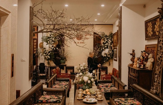 Trong căn nhà ở Hàng Bông, Xuân Hinh trang trí đồ nội thất bằng gỗ màu đen để tạo không gian ấm cúng, sang trọng và truyền thống.