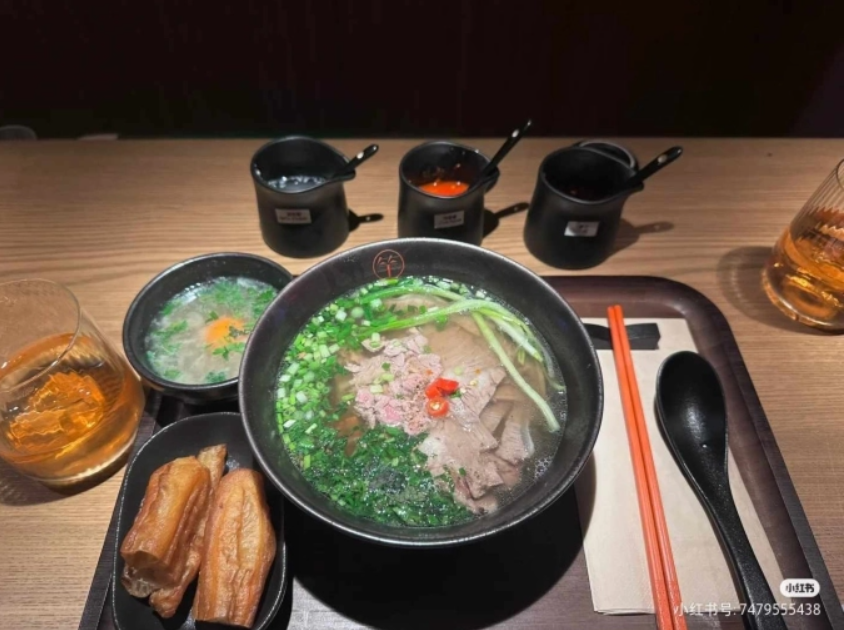 Một thực khách chia sẻ nhận xét trên Weibo: 'Nước dùng của phở được ninh từ xương bò trong thời gian 6-8 tiếng. Mùi vị thơm ngon. Mọi người nên ăn trứng chần trước khi ăn phở. Khi ăn phở, nên thêm chút giấm tỏi sẽ ngon hơn, tương ớt cũng được làm với công thức đặc biệt'.