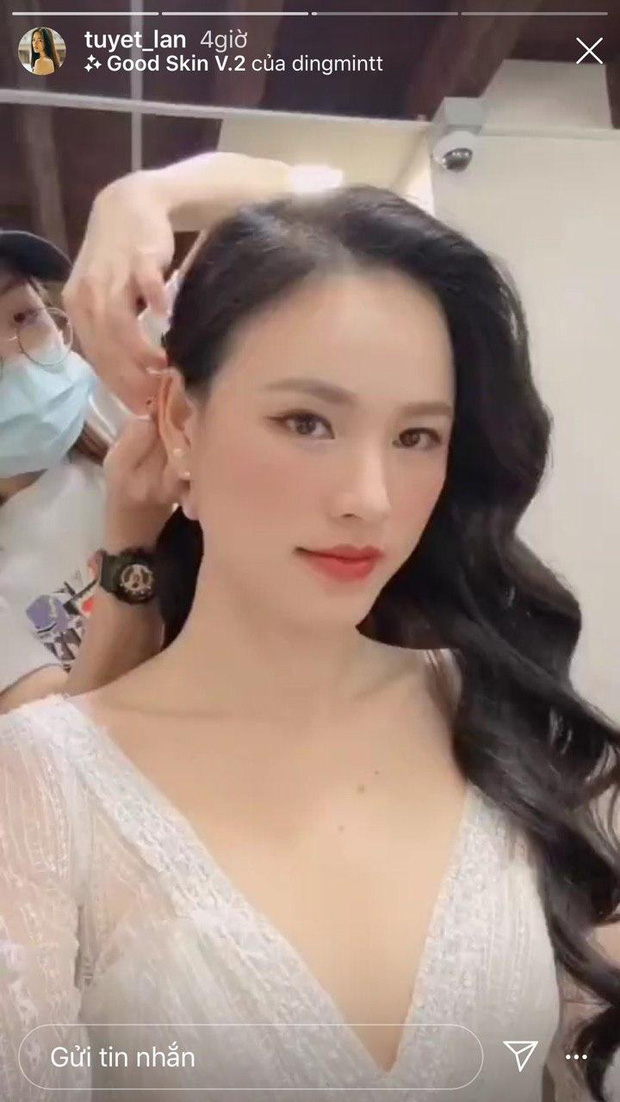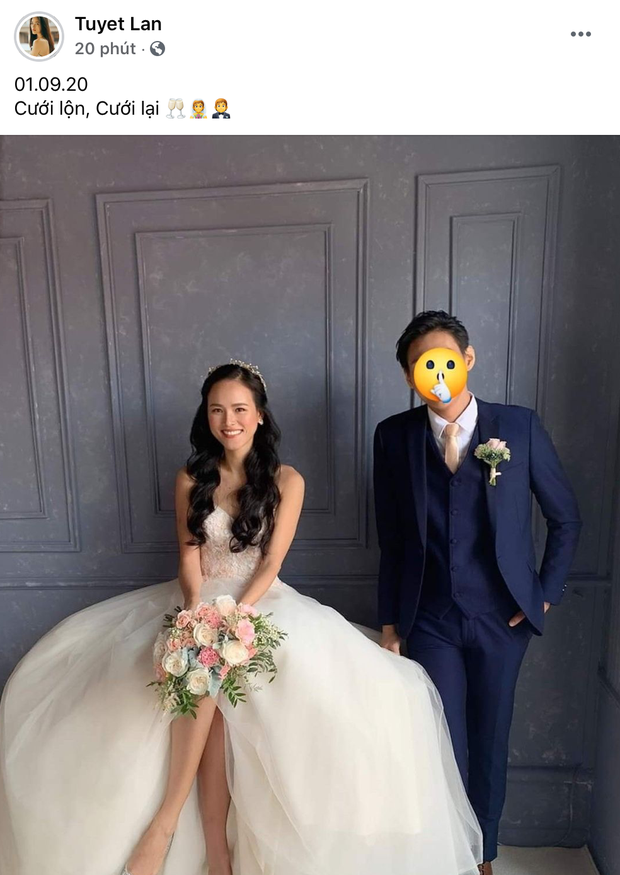 Sau những ngày giấu kín, Tuyết Lan đã tung ảnh cưới và hình hậu trường kèm chú thích rõ ràng "Cưới lộn, cưới lại". Nhan sắc của cô dâu trong bộ bộ váy cưới bồng bềnh, thiết kế kiều diễm như công chúa trở thành chủ đề bàn tán xôn xao. Dù vậy, diện mạo bạn trai vẫn được Tuyết Lan che chắn kĩ càng.