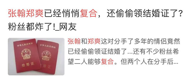 Trang QQ tối ngày 16/2 có chia sẻ một bài viết với tiêu đề gây sốc: "Netizen đưa tin Trịnh Sảng và Trương Hàn chính thức tái hợp, thậm chí còn bí mật đi đăng ký kết hôn".