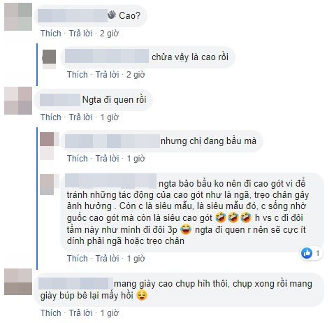 - Dù chị có đi giày cao gót giỏi thế nào thì mình cũng thấy không nên thật vì đang mang thai mà.