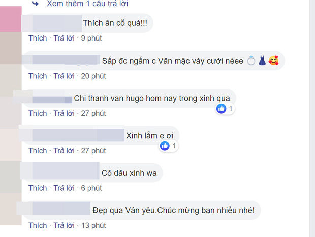 Tuy nhiên, động thái này của Vân Hugo khiến khán giả không khỏi tò mò: Bao giờ thì cô và bạn trai sẽ chính thức về chung một nhà?. Và không để dân tình thắc mắc thêm, mới đây Vân Hugo đã "thả nhẹ" bức ảnh diện trang phục cưới trên trang cá nhân, khuôn mặt ánh lên niềm hạnh phúc. Bên dưới phần bình luận, đông đảo bạn bè và khán giả cũng rần rần vui mừng, liên tục gửi lời chúc phúc tới người đẹp và mong cô sẽ sớm công khai danh tính bạn trai của mình.