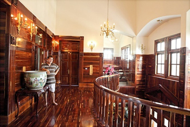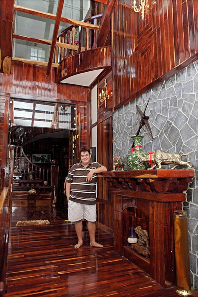 Chưa hết ở Cần Thơ, nam nghệ sĩ sở hữu một cơ ngơi khang trang phủ kín toàn gỗ quý rộng 1000m2. Nội thất trong nhà chủ yếu bằng gỗ xoan, phủ kín từ phòng khách đến từng tay vịn cầu thang.