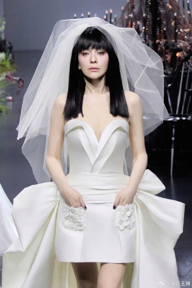 Ngày 30/3, ngôi sao Tân dòng sông ly biệt chia sẻ trên Weibo: “Đây là lần đầu tôi sải bước trên sàn catwalk trong trang phục cưới. Tôi rất vui khi được thể hiện hình ảnh nổi loạn cho người bạn tốt Vương Phong (nhà thiết kế)”.