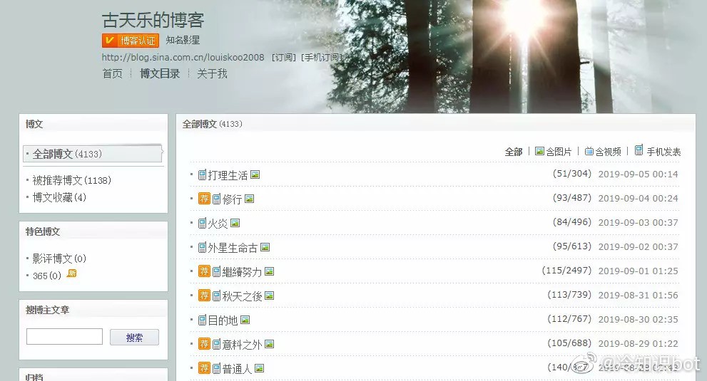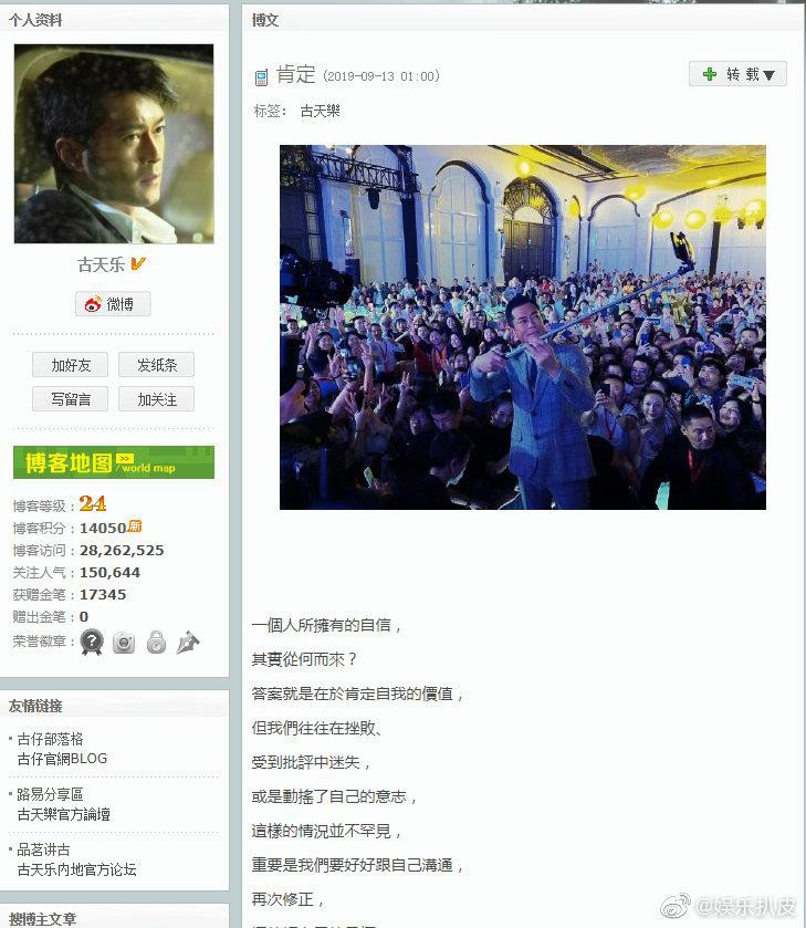Thời điểm hiện tại, khi người người, nhà nhà đã chuyển hết sang dùng mạng xã hội Weibo, facebook, vẫn còn một người trung thành với việc viết blog trên Sina, người này không phải ai khác mà chính là "đại thiên vương Hong Kong" Cổ Thiên Lạc.