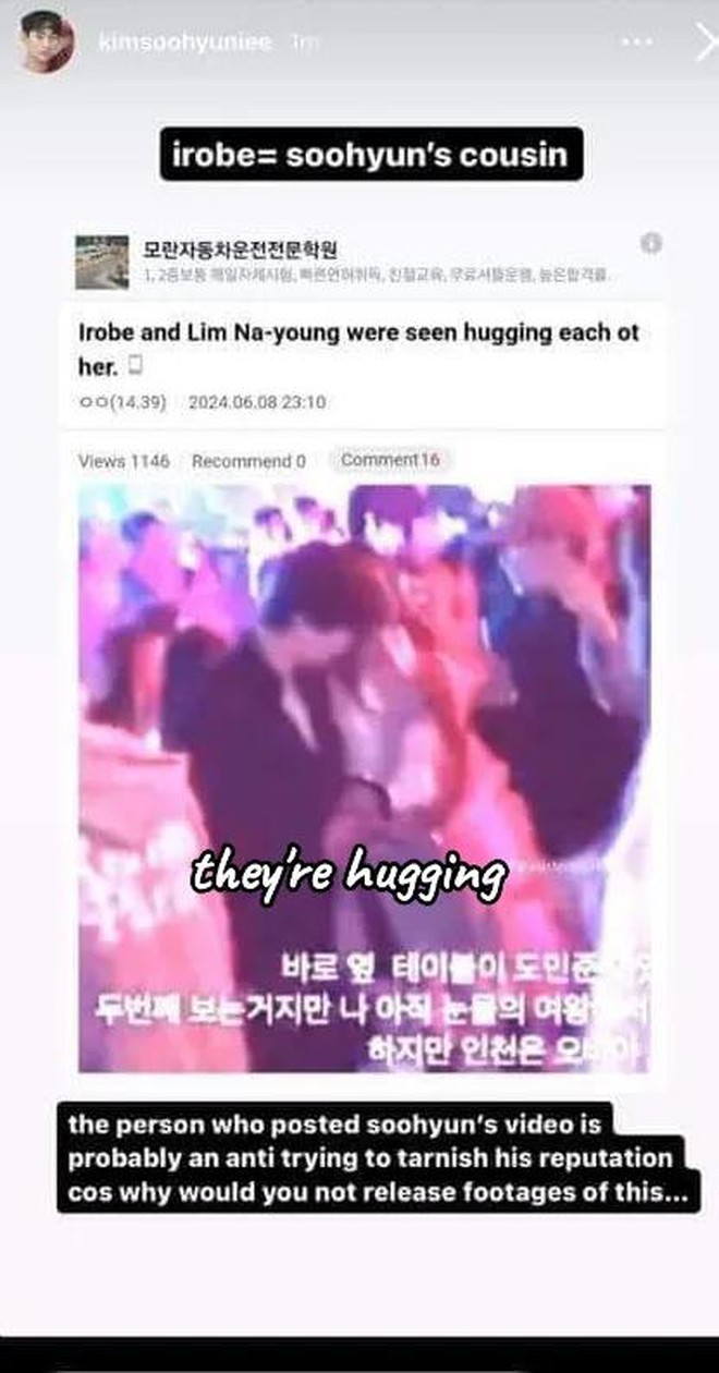 Kim Soo Hyun không hẹn hò với Lim Nayoung, thậm chí còn bị nghi là "bình phong" che giấu cho nữ idol hẹn hò với anh họ mình. Fan bắt được loạt hình ảnh bằng chứng cho thấy Lim Nayoung đang hẹn hò với đạo diễn Lee Sarang - anh họ của Kim Soo Hyun. Lee Sarang mặc áo đen, cùng đi đến bữa tiệc với Kim Soo Hyun. Tại bữa tiệc, anh họ Kim Soo Hyun có cử chỉ nắm tay và ôm lấy Lim Nayoung đầy tình tứ.