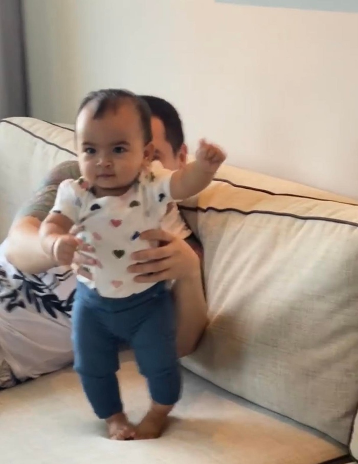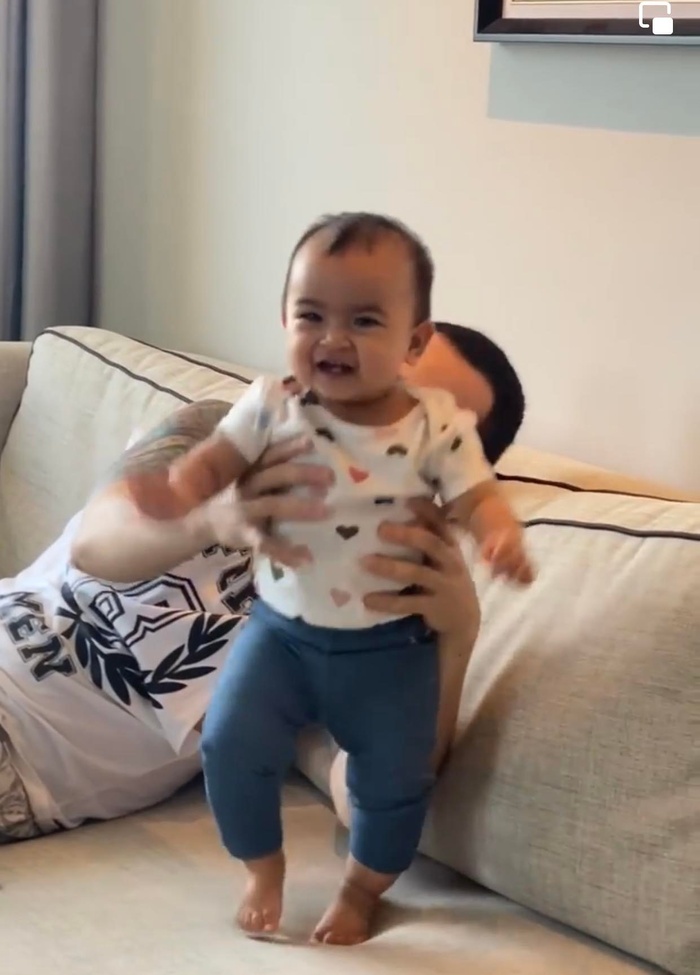 Cô bé ngày càng lanh lợi và đáng yêu hơn khi không những nhún nhảy khi nghe nhạc mà còn mạnh dạn dùng tay "chill" theo nhạc khiến dân tình "xỉu up, xỉu down". Trong tương lai, tiểu công chúa đầy tiềm năng tỏa sáng nếu nối nghiệp ca hát của mẹ đây.