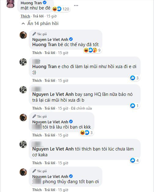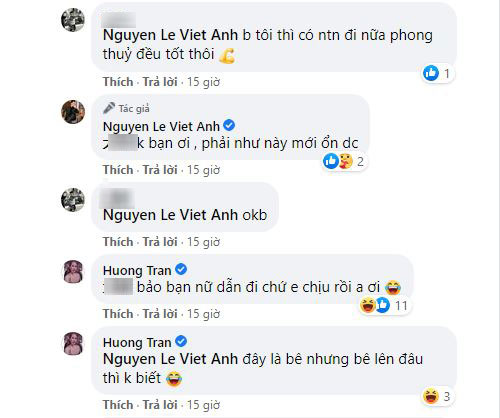 Đáng nói, bên dưới bài đăng của Việt Anh, Hương Trần đã để lại một bình luận khá đặc biệt. Cụ thể, khi một người bạn của nam diễn viên "Người phán xử" đã đùa rằng anh nên sang Hàn Quốc sửa lại chiếc mũi vì sau khi phẫu thuật không đẹp bằng lúc trước, đồng thời nhắn Hương Trần "hộ tống" chồng cũ đi tân trang nhan sắc thì cô đã trả lời rằng: "Bảo bạn nữ dẫn đi chứ em chịu rồi anh ơi". Điều này đã khiến nhiều người cho rằng vợ cũ đang ám chỉ bạn gái mới của Việt Anh. Tuy nhiên, nam diễn viên không có bất cứ phản hồi gì về lời úp mở này.
