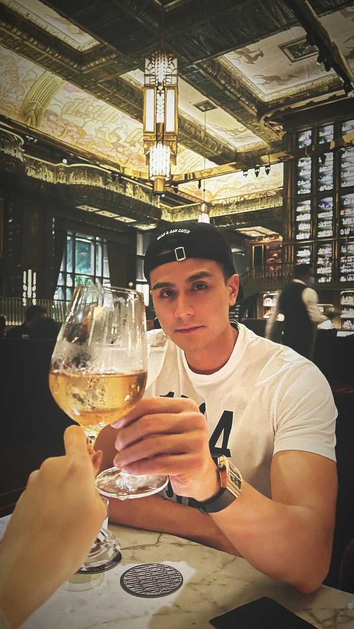 Trong ảnh nam người mẫu xuất hiện trong một không gian như nhà hàng. Vĩnh Thụy ăn mặc đơn giản tay cụng ly với một người đối diện. Tuy người đối diện không để lộ mặt, nhưng qua bàn tay cầm ly, nhiều netizen đoán rằng đây chính là bàn tay của một cô gái vì có sơn móng tay.