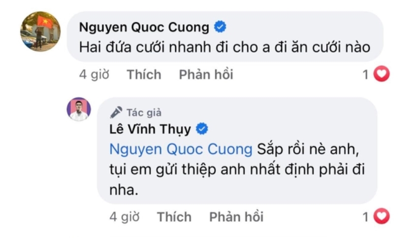 Trong một bức ảnh tình tứ bên bạn gái mới đây, Vĩnh Thụy cũng hé lộ về việc sắp sửa kết hôn. Đây là lần đầu tiên siêu mẫu Vĩnh Thuỵ lên tiếng xác nhận và công khai nhắc về hôn lễ trên mạng xã hội nên khiến cư dân mạng đặc biệt quan tâm.