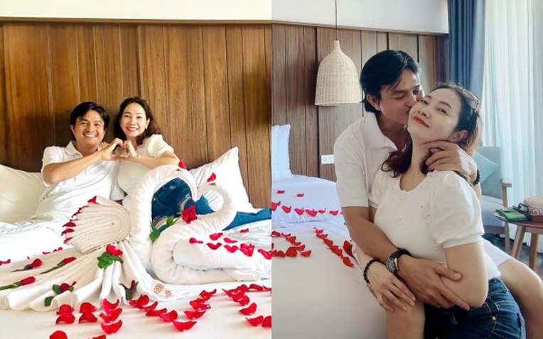 Sáng sớm chồng chúc vợ "luôn mạnh khoẻ, hạnh phúc bên chồng và yêu thương chồng". Vợ cũng xin chúc chồng "luôn hạnh phúc bên cạnh vợ, tràn đầy sức khỏe và thành công trong mọi lĩnh vực. Em biết ơn anh vì tình yêu, sự chăm sóc và sự đồng hành của anh trong cuộc sống. Mong rằng tình yêu của chúng ta sẽ ngày càng vững bền và mãi mãi".
