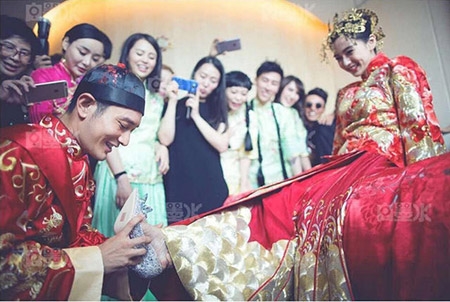 Một tuần sau hôn lễ, Hiểu Minh và Angelababy chia sẻ loạt hình ảnh "độc" trong đám cưới, do chính ê kíp của cặp đôi ghi lại. Bộ ảnh bao gồm những khoảnh khắc ngọt ngào trong nghi thức cưới truyền thống, bao gồm các màn "phá cửa" (chịu thách đố, chịu phạt của nhà gái) để vào rước dâu, đi giày cho cô dâu... |