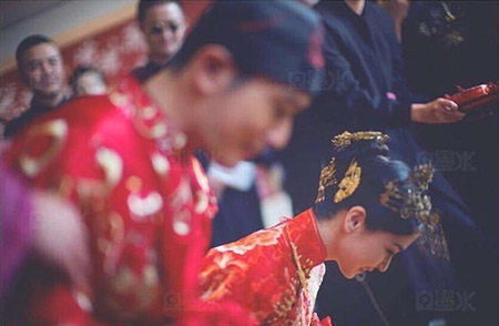 Các nghi thức cơ bản trong lễ rước dâu được thực hiện: Lạy tạ, dâng trà cho phụ mẫu của cô dâu và nhận lì xì. |
