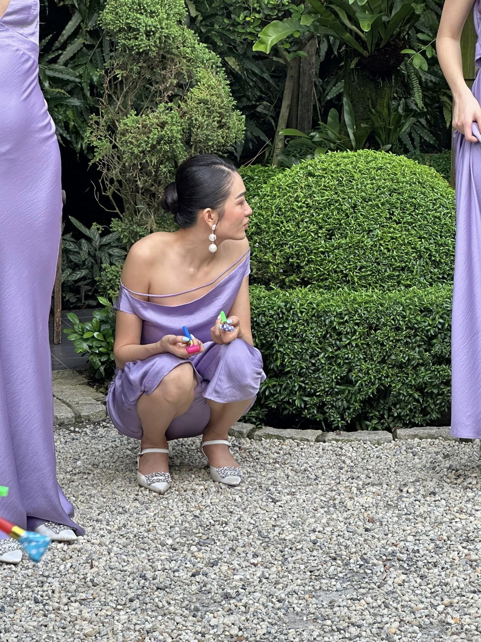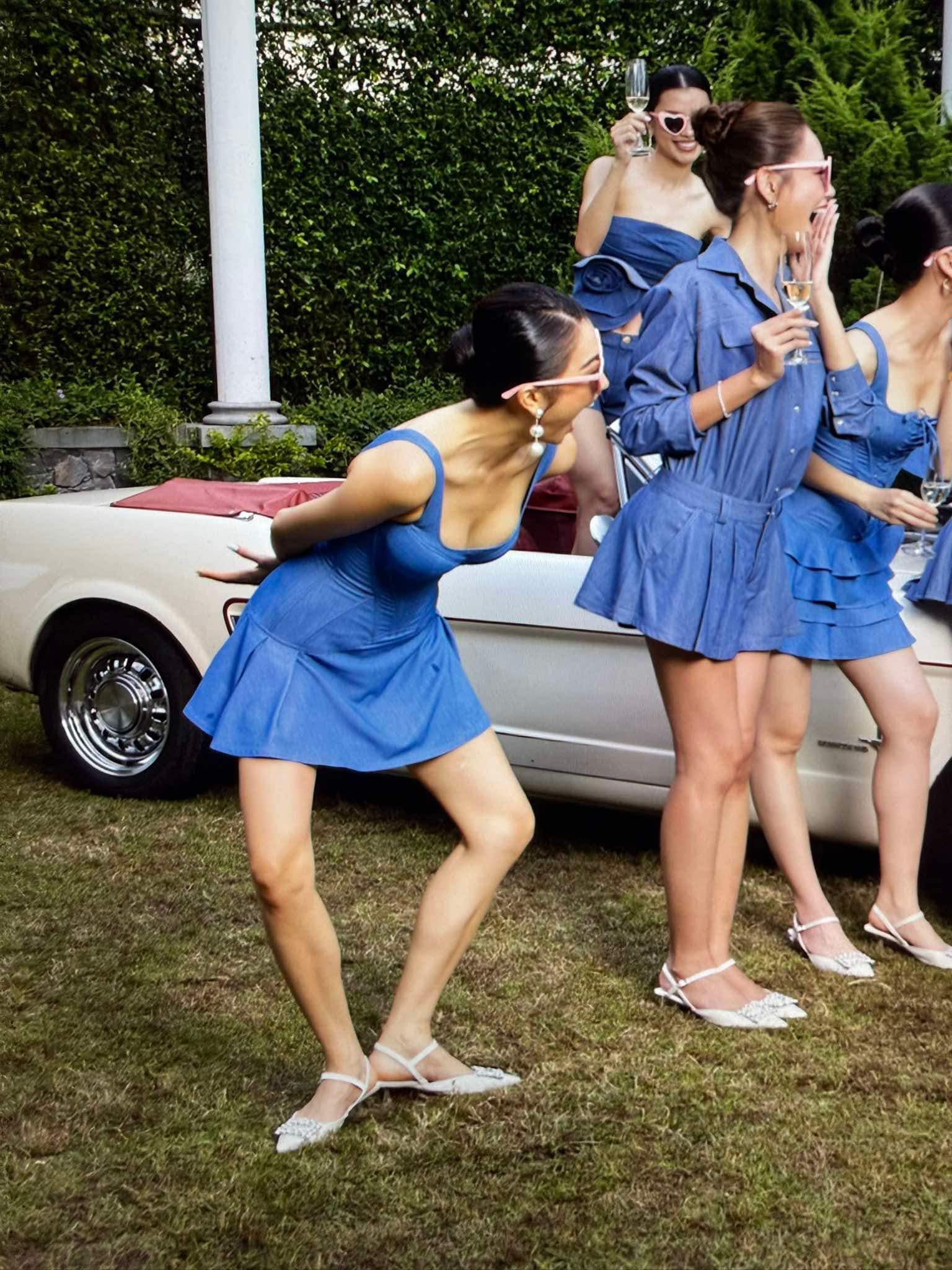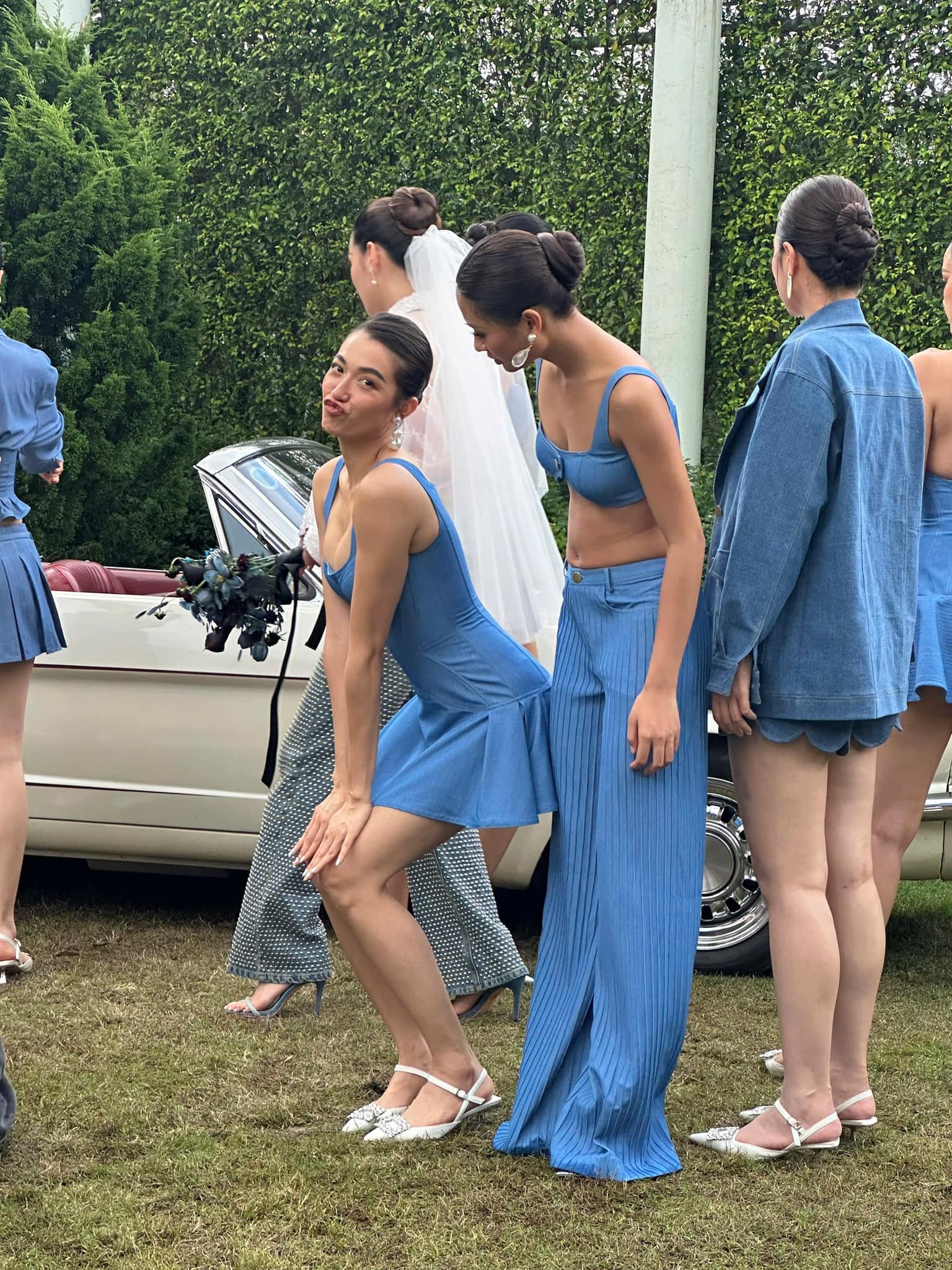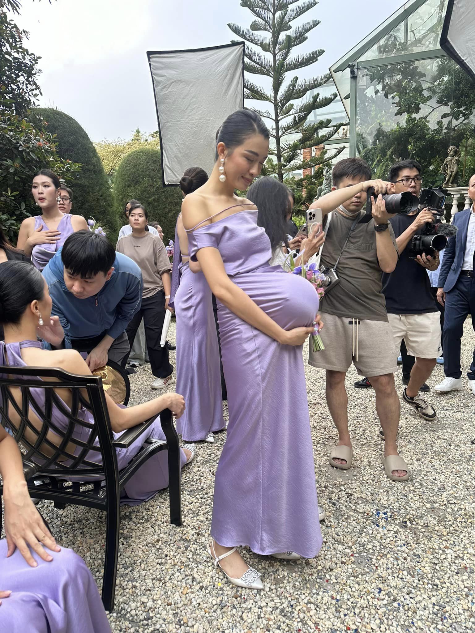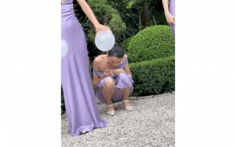Không chỉ có những khung ảnh xịn xò, sốc visual mà cô dâu và hội bạn thân còn cùng nhau pha trò, lầy lội ở hậu trường. Khánh Vân khoe ảnh nghiêm túc, thần thái bao nhiêu thì Á hậu Lệ Hằng lại "xả kho" clip hài hước bấy nhiêu. Theo đó, trong khi Khánh Vân và chồng tình tứ, siết chặt tay nhau phát "cẩu lương" thì Á hậu Lệ Hằng ngồi thỏm xuống đất, biểu cảm "hóng chuyện" gây chú ý. Không chỉ thế, Lệ Hằng còn dùng bóng bay đặt vào bụng để "tiểu phẩm" pha trò trong hậu trường. Lệ Hằng cho biết sau khi chụp bộ ảnh này mệt tương đương với chạy 21km vì giỡn hớt quá nhiều.