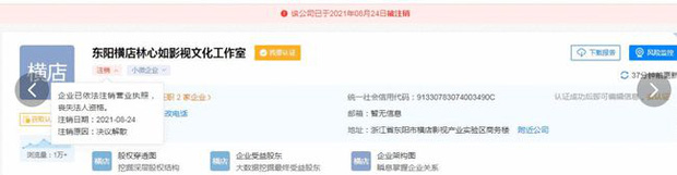 Theo trang 163 đưa tin, phòng làm việc văn hóa điện ảnh Lâm Tâm Như Hoành Điếm Đông Dương đã chính thức đóng cửa vào ngày 24/8. Được biết, phòng làm việc này dược thành lập từ năm 2013 với vốn đăng ký là 100.000 tệ (351,4 triệu đồng).