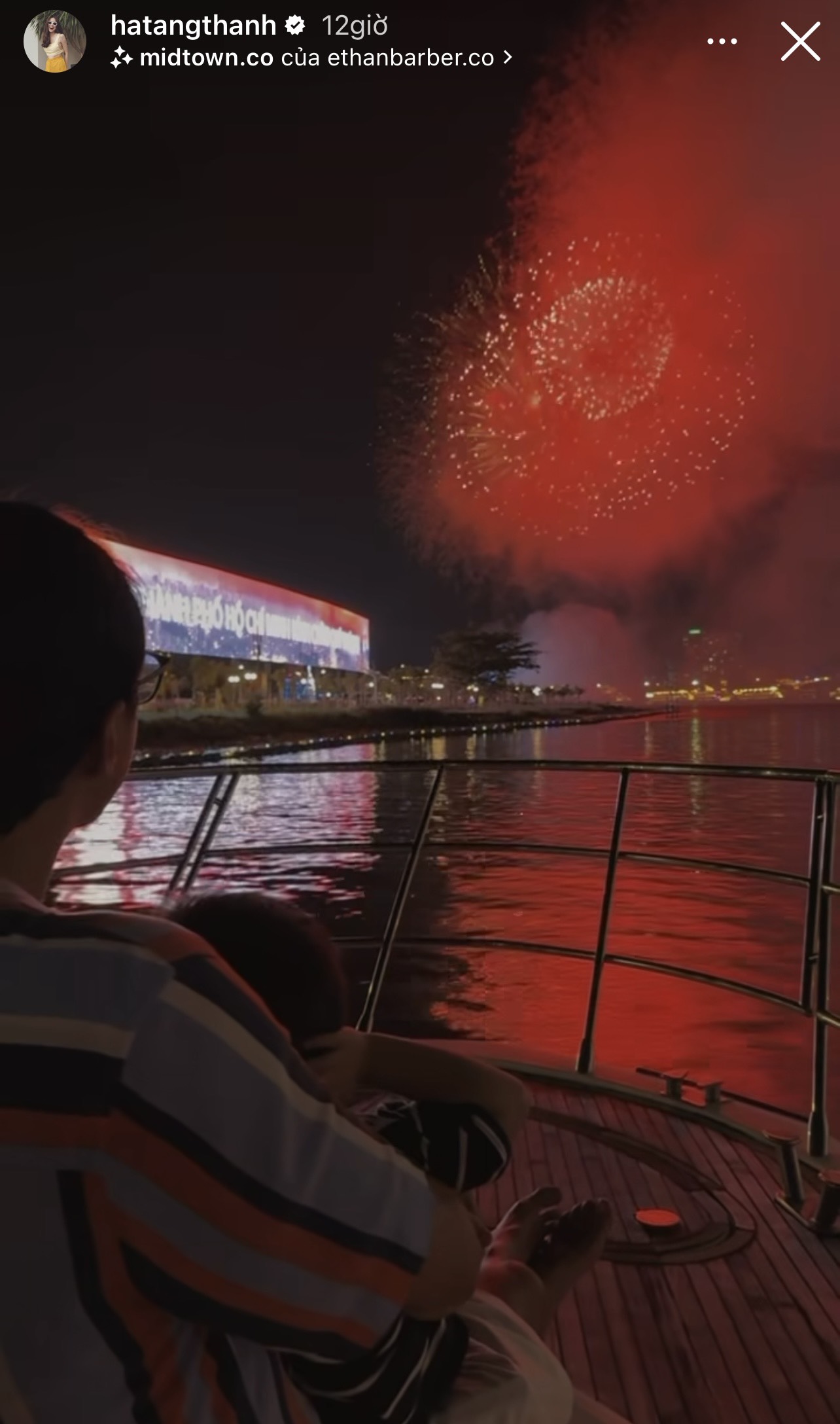 Mới đây, Tăng Thanh Hà và ông xã doanh nhân Louis Nguyễn đã cùng đăng tải khoảnh khắc nghỉ lễ lên trang cá nhân. Nữ diễn viên khoe khoảnh khắc chồng đang ngồi ôm con trai ngắm pháo hoa trên du thuyền. Sau đó không lâu, ông xã của cô cũng đăng tải bức ảnh tương tự.