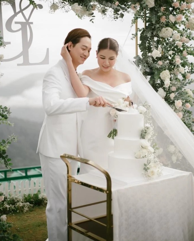 Trước đó, ngày 27/5, hôn lễ của Trang Trần được tổ chức ngoài trời, tại Đà Lạt với sự góp mặt của gia đình và bạn bè thân thiết. Dược sĩ Tiến chính là người đặc biệt bắt được bó hoa cưới của cựu người mẫu.
