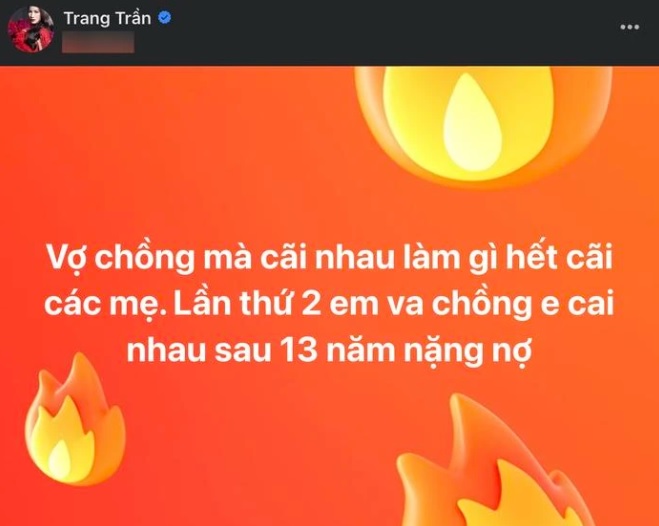 Đáng chú ý, chỉ sau ít ngày kết hôn, vợ chồng Trang Trần bất ngờ xảy ra cãi vã. Cựu người mẫu lập tức phải đăng đàn xin ý kiến về cách giải quyết sự việc này. Động thái này khiến người hâm mộ không khỏi bất ngờ và hoang mang.