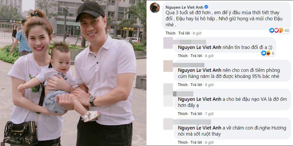 Tuy nhiên, bình luận trên của Việt Anh vấp phải nhiều ý kiến trái chiều. Dân mạng cho rằng thay vì bình luận trên Facebook, nam diễn viên nên gọi điện hỏi han hoặc có mặt để hỗ trợ vợ cũ chăm sóc con trai: "Anh về chăm con đi, nghe Hương nói mà sốt ruột thay", "Nhắn tin trao đổi đi anh”, “Sao em thấy buồn và thương 2 mẹ con quá, khi con ốm đau có vợ có chồng còn thấy khổ huống chi là một mình”, "Mấy ông nội nói thì giỏi. Chị em phụ nữ khi có con thì cần đàn ông làm nhiều hơn nói"…