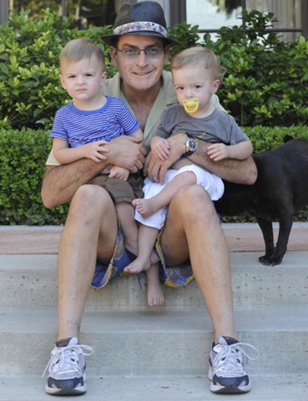 Charlie Sheen và hai con trai sinh đôi với người vợ ba - Brooke Mueller. |