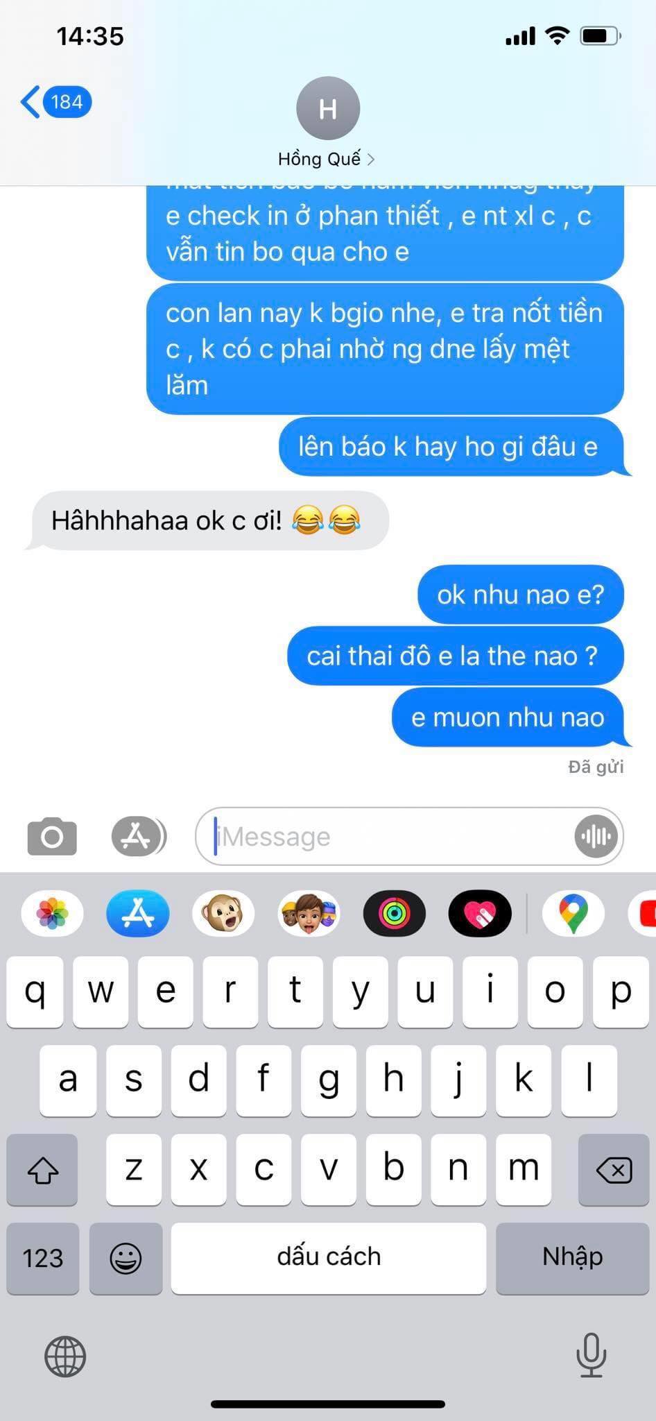 Hương Trần cũng đăng loạt ảnh chụp màn hình tin nhắn mà cô gửi cho Hồng Quế để chứng minh điều mình nói.
