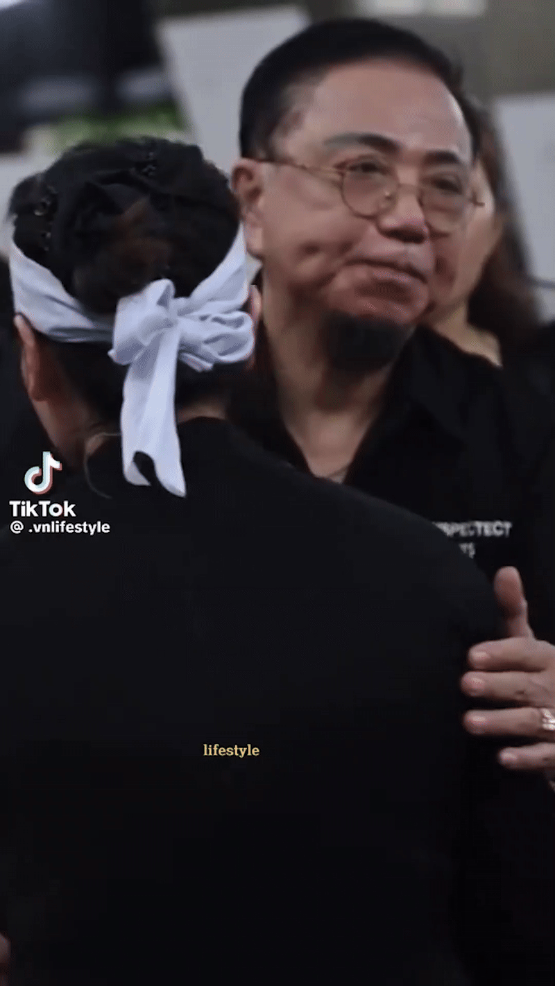 | Bà xã Ngọc Tiền thất thần tại Nhà tang lễ Quốc gia phía Nam (Nguồn: @.vnlifestyle) |