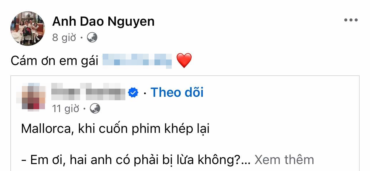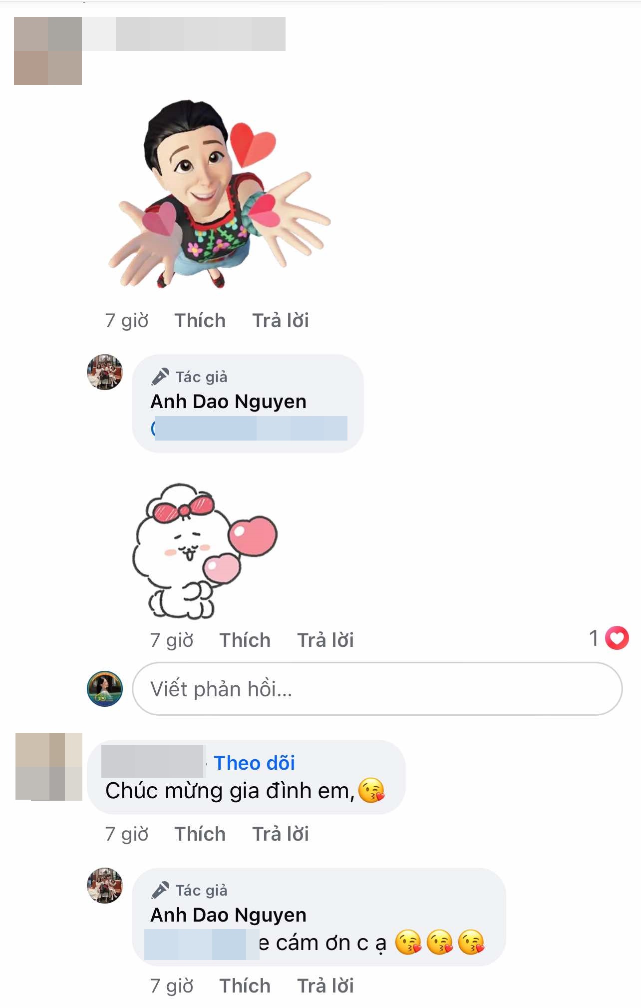 Ngay sau khi thông tin này được người hỗ trợ pháp lý đăng tải, Anh Đào - vợ diễn viên Hồng Đăng đã chia sẻ bài đăng về trang cá nhân và gửi lời cảm ơn. Dưới phần bình luận, Anh Đào tiếp tục thể hiện cảm xúc vui vẻ khi được mọi người chúc mừng.