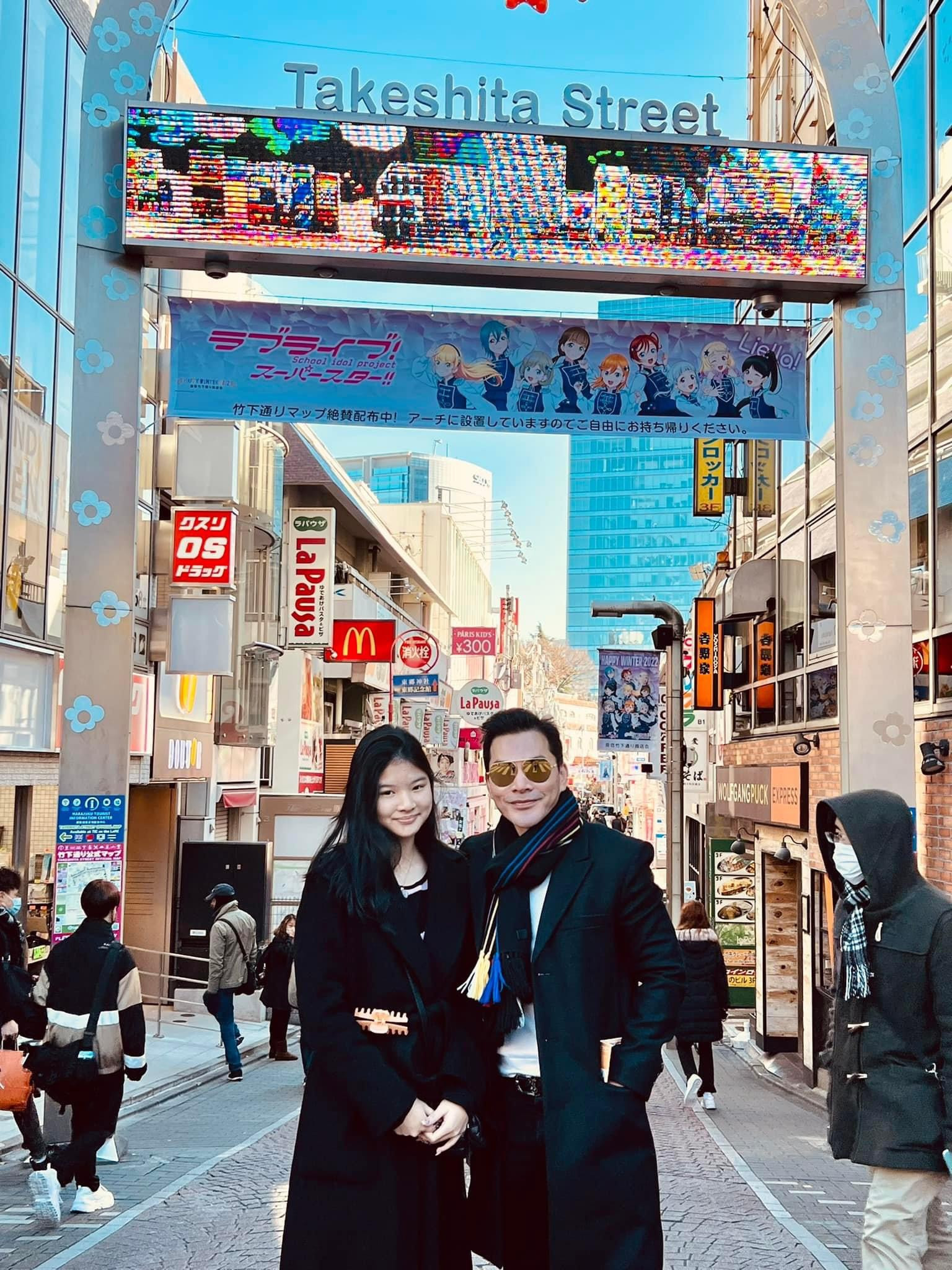 Vợ NSND Công Lý xinh đẹp xuống phố một mình trong khi đó bố con Trần Bảo Sơn đồng hành trong chuyến du lịch bên Nhật Bản.