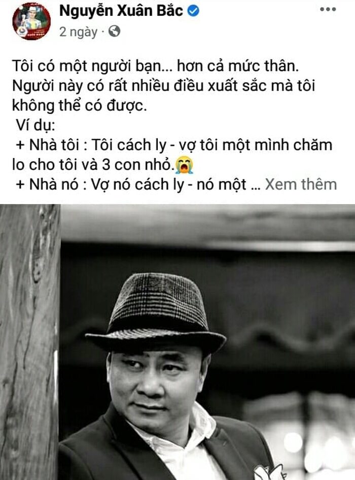 Sự săn sóc, chu đáo của Tự Long được nghệ sĩ Xuân Bắc ngưỡng mộ đến nỗi phải đăng một bài viết dài để khen bạn: