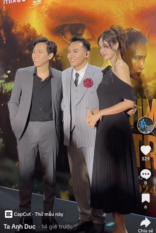 Tuy nhiên, cư dân mạng đổ dồn sự quan tâm vào vóc dáng có phần khác lạ của nữ diễn viên sinh năm 1999. Dù đã lựa chọn chiếc váy có thiết kế rộng rãi nhưng vòng 2 của Quỳnh Anh vẫn lùm lùm lớn rõ. Khi chia sẻ khoảnh khắc tham gia sự kiện này, cặp đôi cũng khéo léo lựa chọn góc cận mặt của Quỳnh Anh, không để lộ vóc dáng.