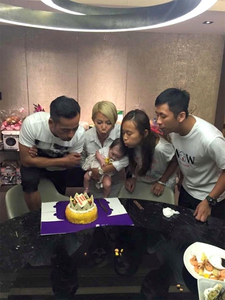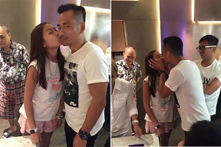 Alvin Chau hôn con gái trong ngày sinh nhật con. |