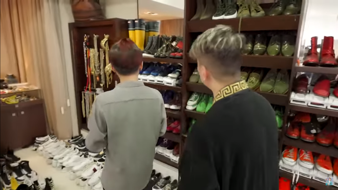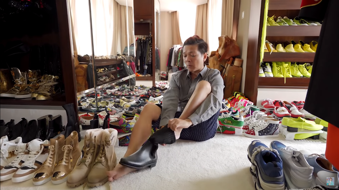Căn phòng rất rộng nhưng chỗ nào cũng chật kín đồ và giày. Trong đó, Đàm Vĩnh Hưng để la liệt vài ngàn đôi giày hiệu các loại từ trên tủ, kệ tới xuống khắp sàn nhà. Có cả những kiểu giày khá lạ, màu sắc đủ kiểu, từ những thương hiệu đình đám nhất, khiến Vũ Hà phải quỳ lạy vì quá sợ hãi.