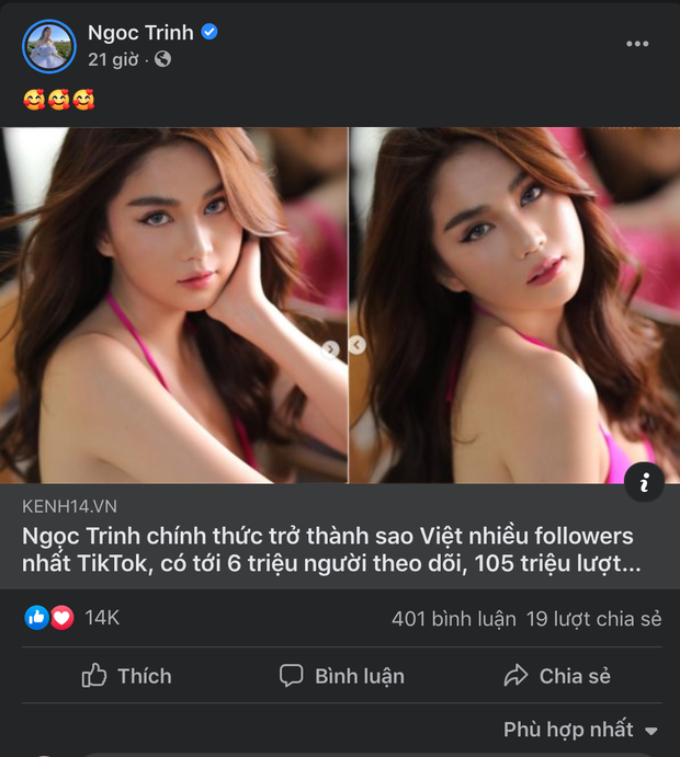 Vũ Khắc Tiệp chúc mừng Ngọc Trinh trở thành "nữ hoàng của mạng xã hội Việt Nam", nhưng nhìn sơ qua nhiều netizen đã phát hiện điểm cực vô lý.