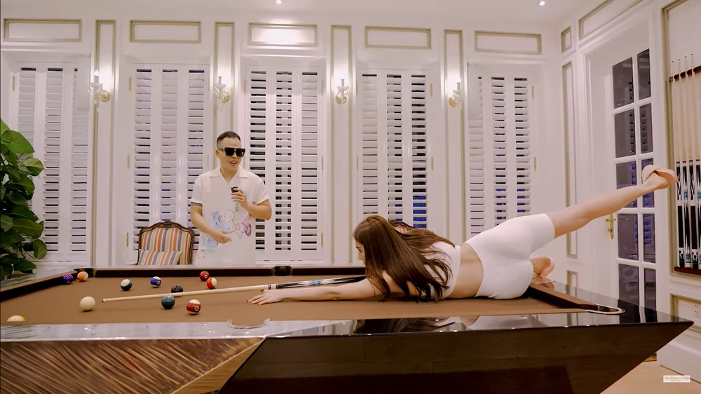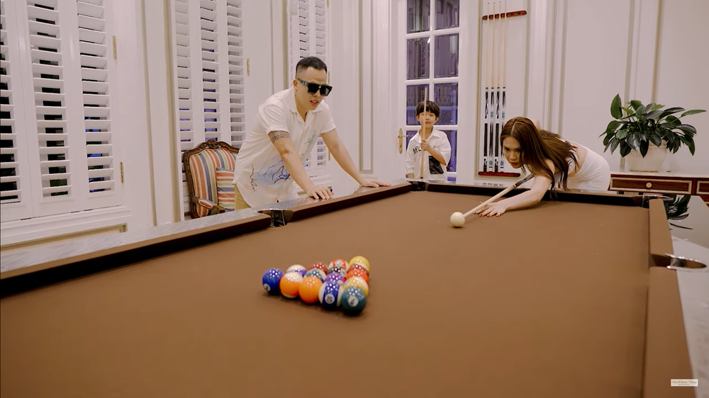 Sau đây, tôi sẽ đặt thêm một chiếc bàn màu hồng nữa để đặt tại nhà Ngọc Trinh. Như vậy, Ngọc Trinh có tới hai bàn Bi-a".