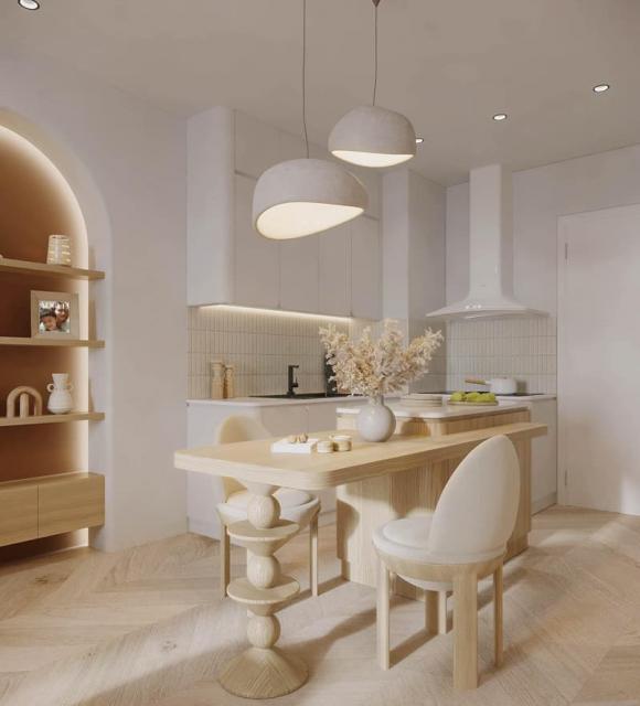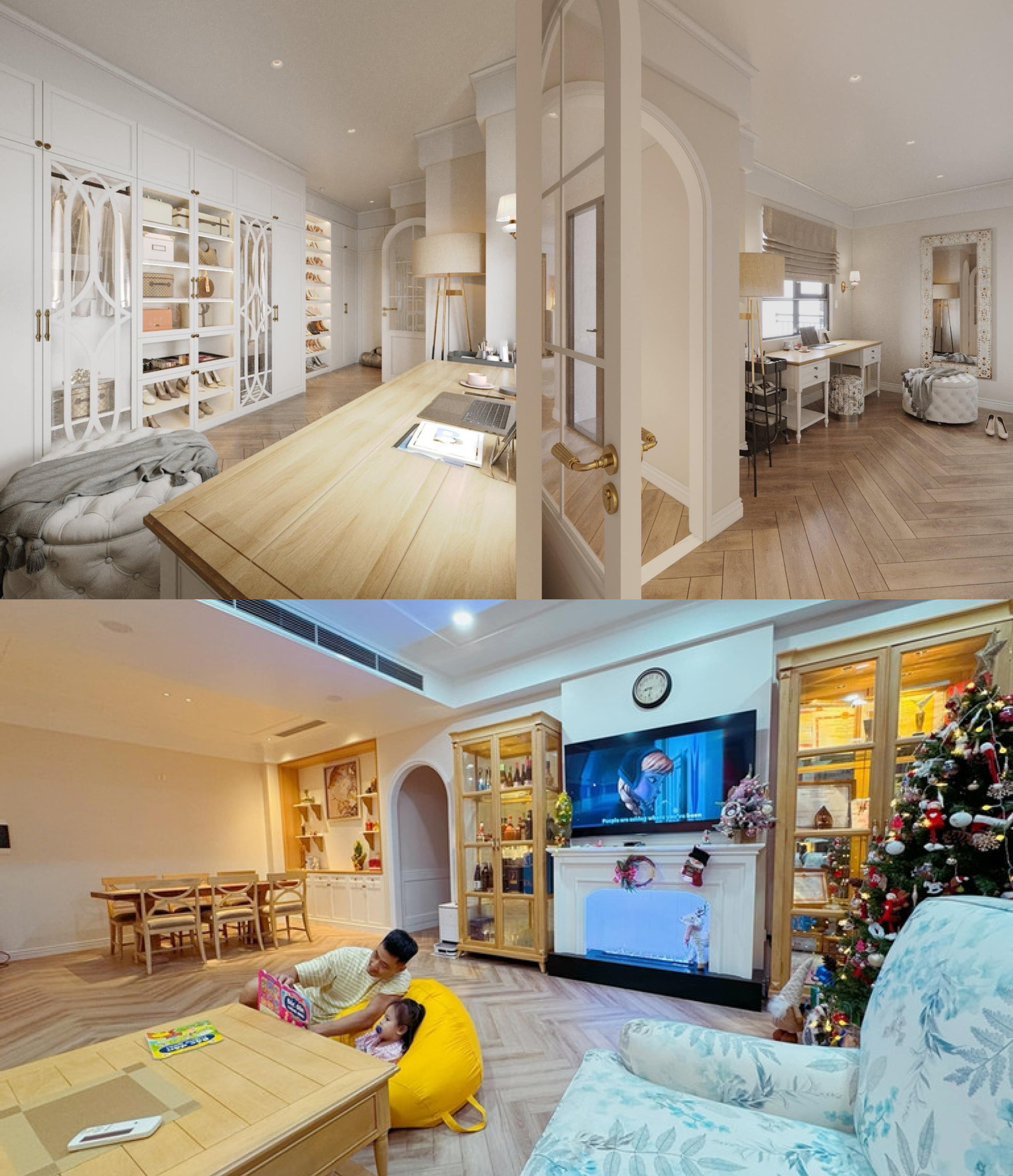 Với căn hộ mới tậu gần nhất này. Bảo Thanh lựa chọn nội thất phong cách Farmhouse hiện đại. Nữ diễn viên đã phân vân rất nhiều phương án trước khi chọn Farmhouse nhưng sau khi thấy bản phối cảnh 3D, cô quyết định chốt và bắt tay thi công luôn. Được biết, căn hộ rộng khoảng 200 m2 gồm 3 phòng ngủ. Tông màu chủ đạo của căn nhà là trắng, kết hợp cùng nội thất be/nâu hài hoà, sang trọng.
