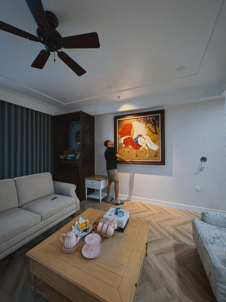 Dù mới chỉ hé lộ vài góc, có thể thấy nhà mới của Quỳnh Lương mang phong cách minimal và kết hợp Indochine với hai màu trắng đen làm chủ đạo. Nội thất và hoa, tranh trang trí đều do đích thân chính chủ mua và tự tay sắp đặt theo sở thích