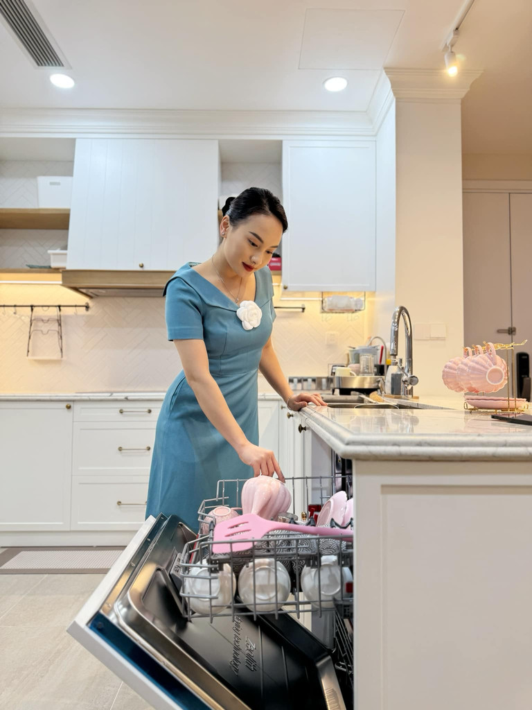 Ngôi nhà với kiến trúc không gian kết nối giữa phòng khách, phòng ăn và nhà bếp. Toàn bộ nội thất trong nhà đều được làm bằng gỗ cao cấp nên càng sang xịn và thể hiện đẳng cấp của gia chủ. Được biết, Quỳnh Lương và mẹ mất nhiều công sức sắm sửa nội thất bởi căn nhà rất rộng nên cần lựa chọn kĩ càng đồ dùng sao cho phù hợp.