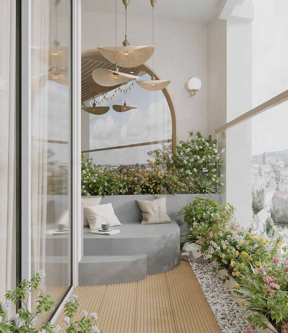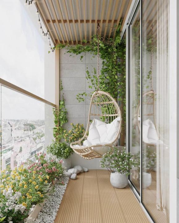 Điểm khiến khán giả trầm trồ nhất tại căn nhà của Huyền Lizzie là khu vực ban công. Nhìn từ bản 3D, đây như một thiên đường có hoa và cây xanh cùng ghế, võng ngồi view thành phố từ trên cao "chill" sau mỗi ngày làm việc căng thẳng.
