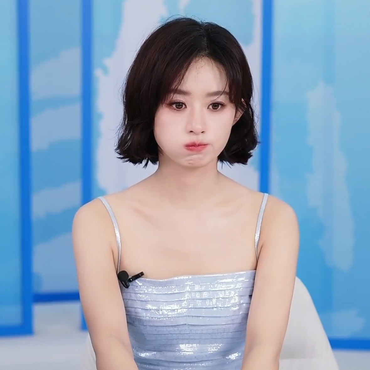 Xuất hiện trên sóng livestream lần này, mỹ nhân "Sở Kiều Truyện" diện một chiếc váy 2 dây satin kiểu dáng đơn giản nhưng khá thanh lịch, nữ tính. Mái tóc ngắn được cắt tỉa gọn gàng càng làm tôn lên vẻ dịu dàng và ngày càng đằm thắm của Triệu Lệ Dĩnh.
