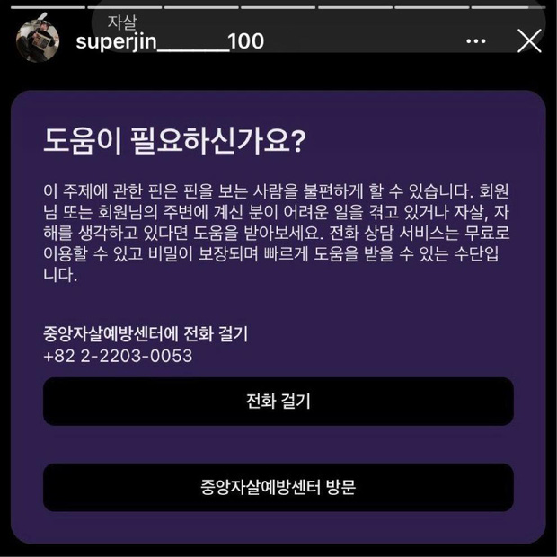 Vào ngày 29/12, Baekjin (cựu thí sinh Produce X 101) đã khiến dân tình sốc nặng khi đăng tải hình ảnh cánh tay chi chít những vết rạch rướm máu lên Instagram cá nhân. Không những vậy, nam idol còn đăng tải story là hình ảnh số tổng đài hỗ trợ những người có ý định tự tử.