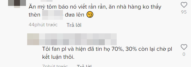Tuy nhiên, cũng có một số cư dân mạng cho rằng việc Thủy Tiên và ekip đi ăn uống để lấy lại năng lượng và nghỉ ngơi sau mỗi đợt cứu trợ ở địa phương là điều bình thường, không đáng bị soi mói quá mức. Ngoài ra, ekip trong clip này cũng có thể là những người đã tham gia vào đoàn từ thiện của Thủy Tiên sau khi thấy cô một mình xung phong ra miền Trung cứu trợ lũ lụt.